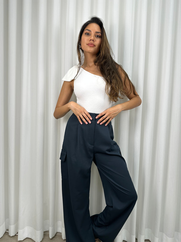 Crafted from textured stretch fabrication, this bodysuit offers comfort and style.
