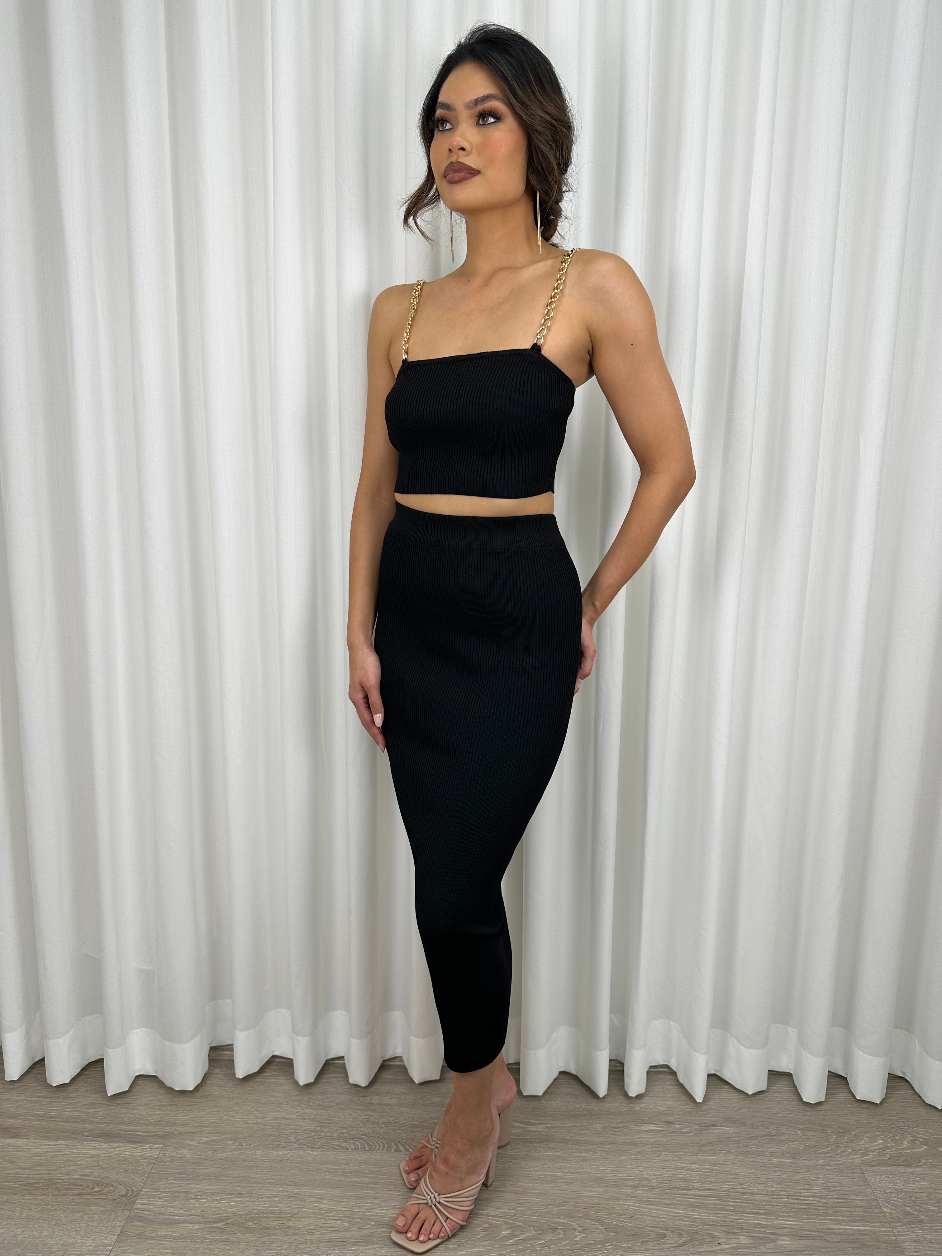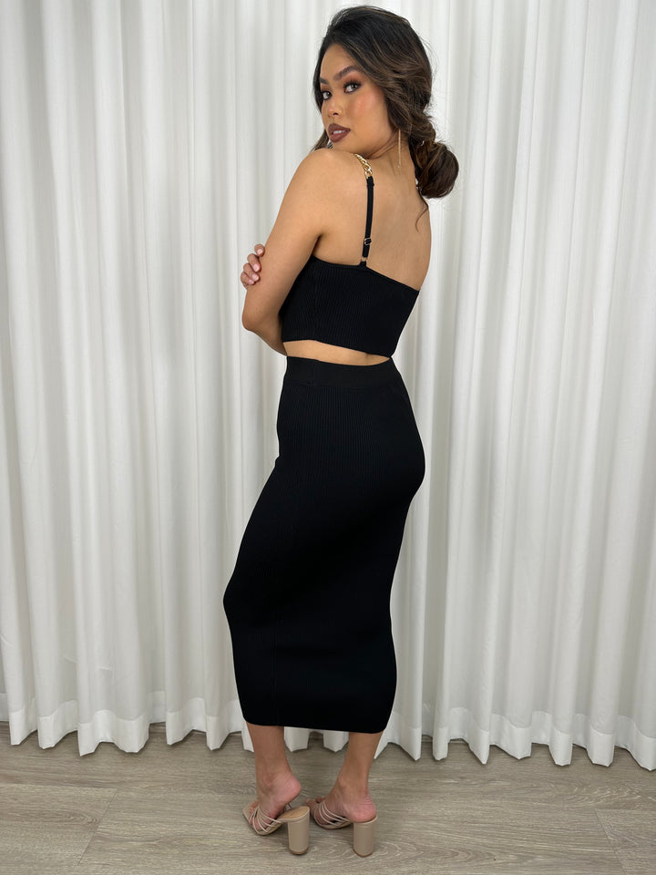 Stretch rib knit fabrication for a contemporary and stylish look.