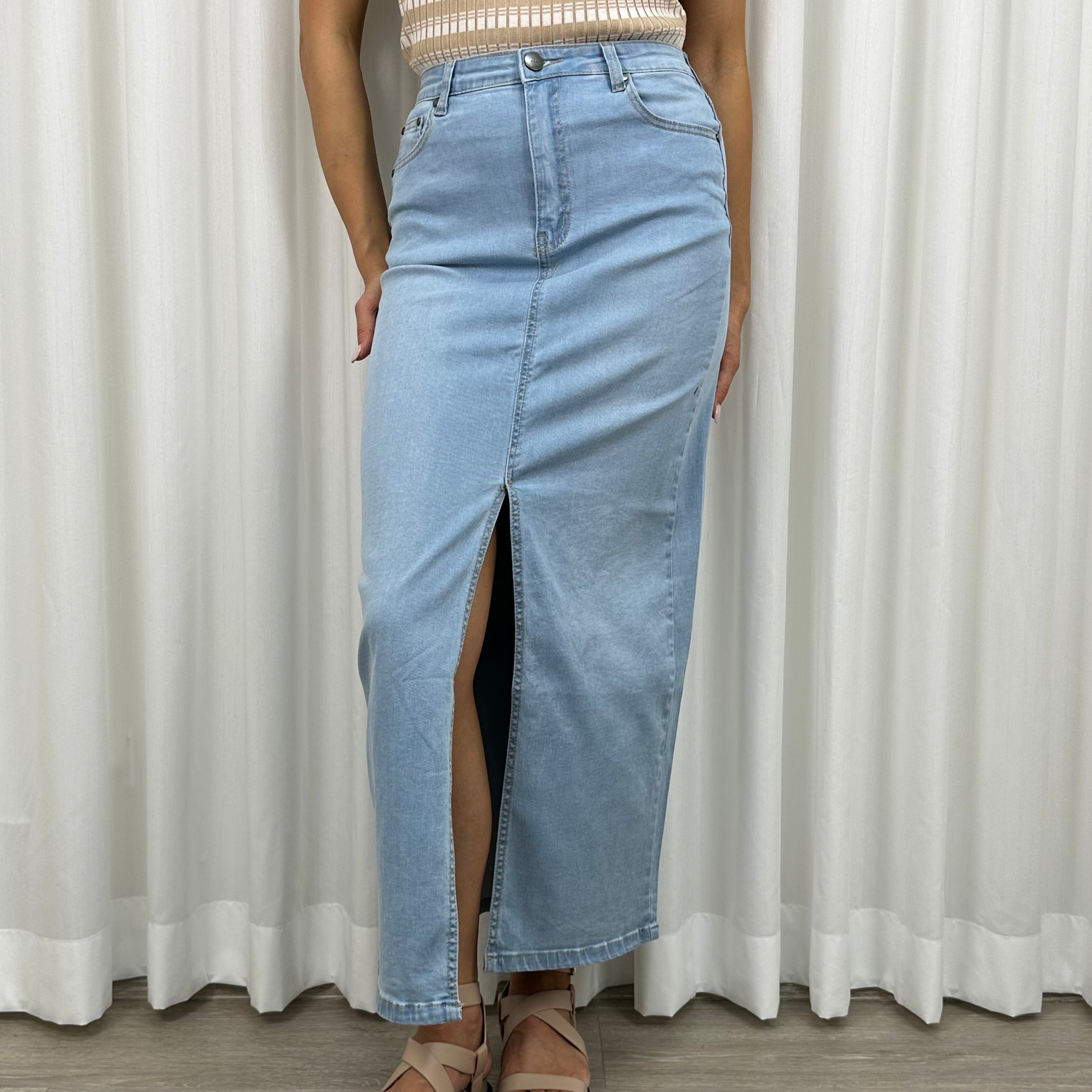 Iconic Maxi Denim Skirt - Light Blue