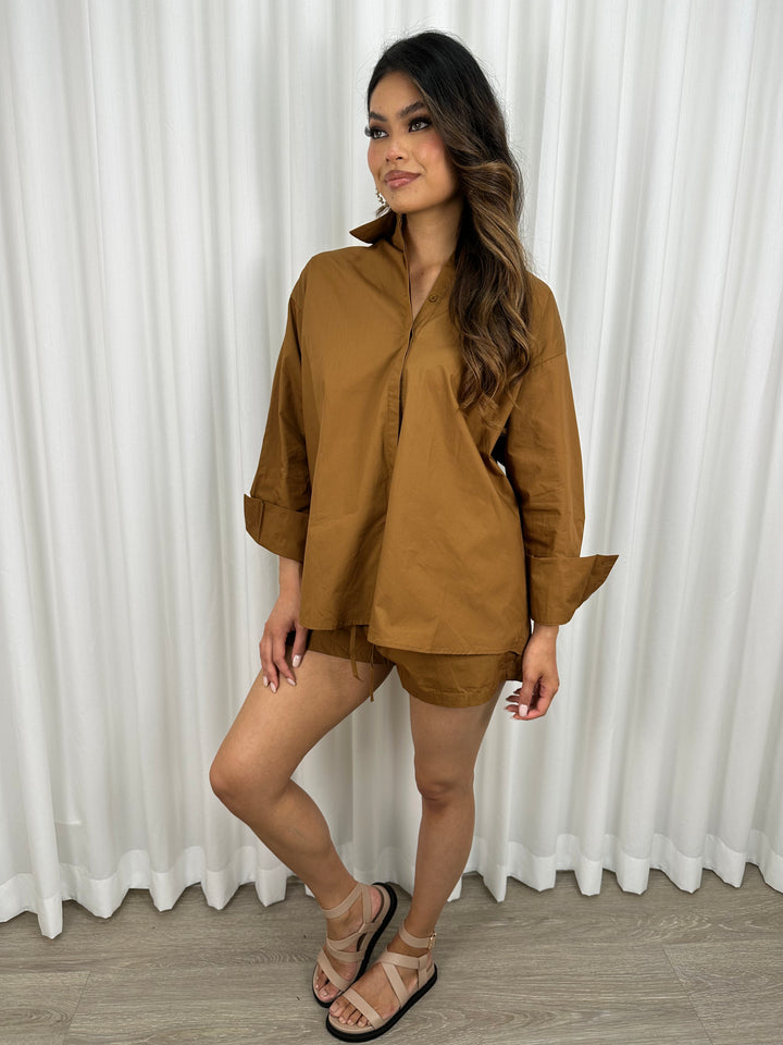 Elevate your casual chic with this fabulous long sleeve collared shirt featuring a front button design for a hint o...