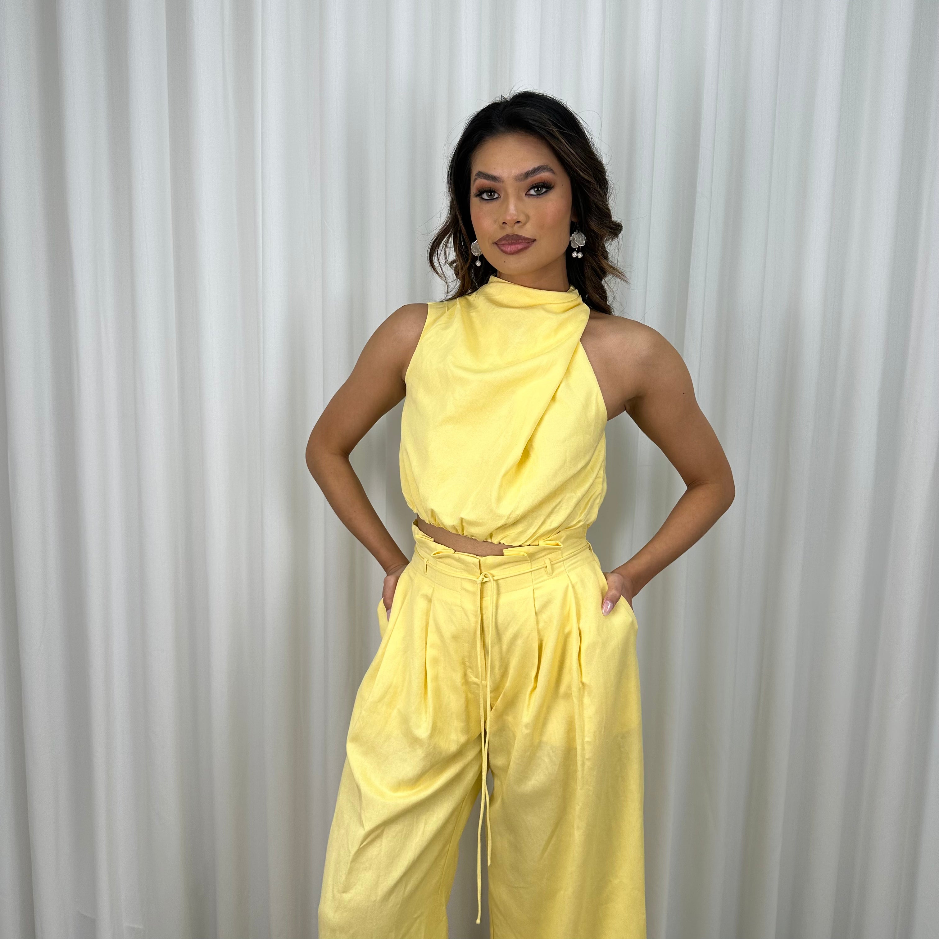 High neck sleeveless design for a chic and sophisticated look.